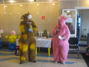 Пришедших на День знаний родителей и детей встречали сказочные герои Зайка и бычок Гаврюша из «Простоквашино». Не тратя времени даром, тут же затеяли игры, которые чередовались с загадками, конкурсами, викторинами. Ребята задорно танцевали, играли, соревновались, на скорость собирали портфель в школу.