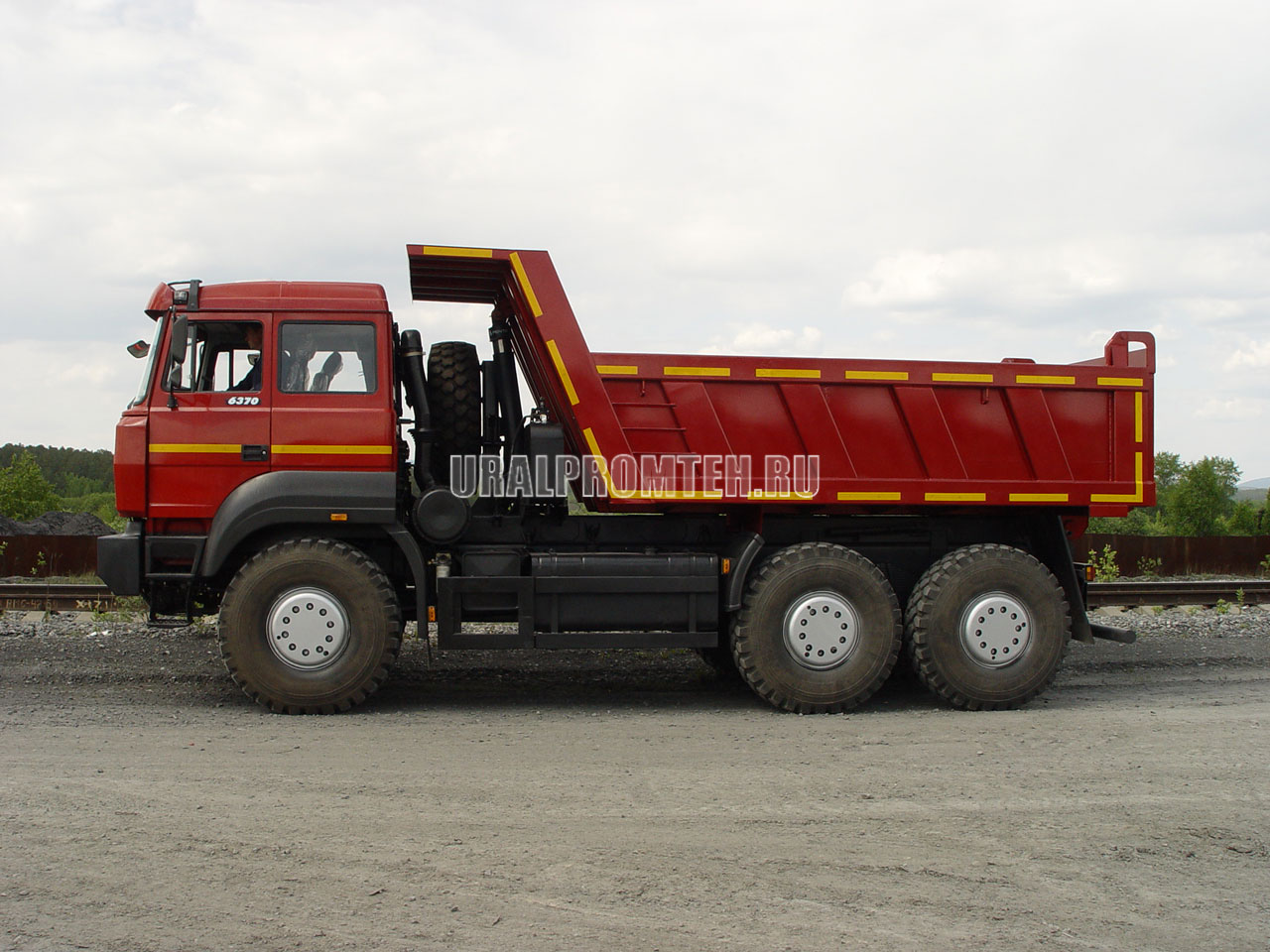 Самосвал разработан на шасси Урал 6370 с колесной формулой 6×6 на односкатной ошиновке. Двигатель: модель ЯМЗ- 650, номинальная мощность 412 л.с.
