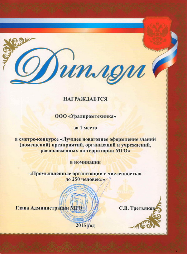 Награда в смотре-конкурсе «Лучшее новогоднее оформление»