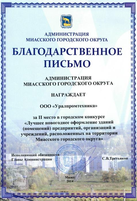Награда за участи в конкурсе «Лучшее новогоднее оформление»