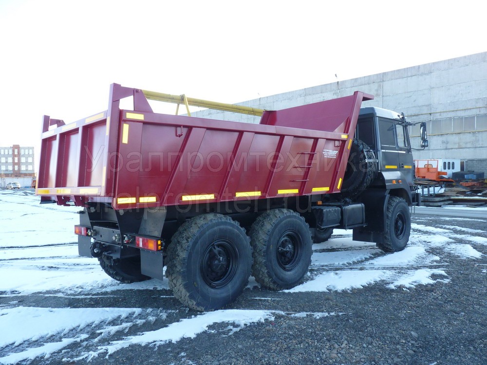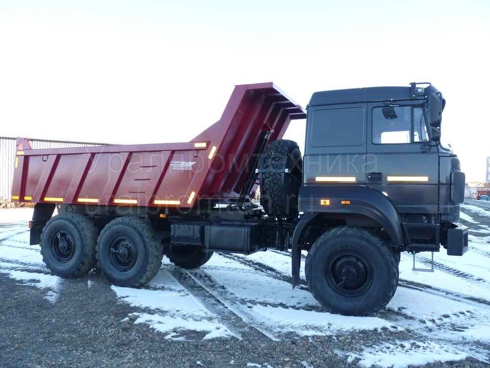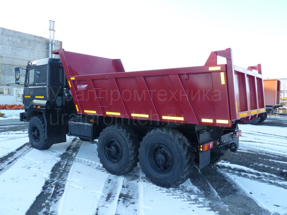 Автомобиль-самосвал с колесной формулой 6х6, предназначен для перевозки различных сыпучих строительных и промышленных грузов, кроме скального грунта, по всем видам дорог.
