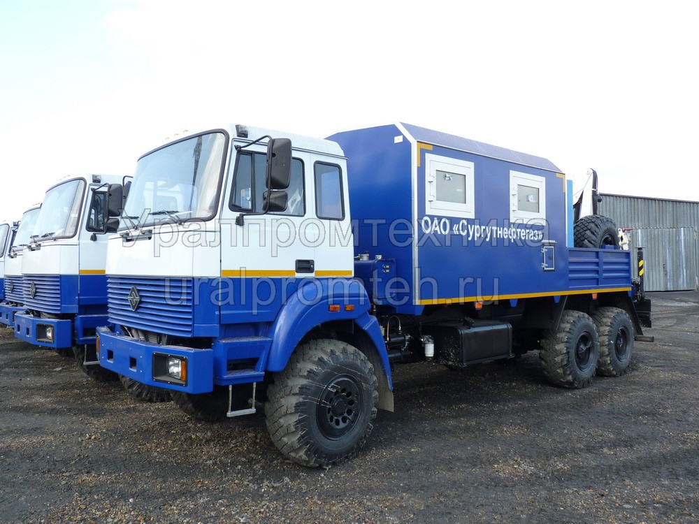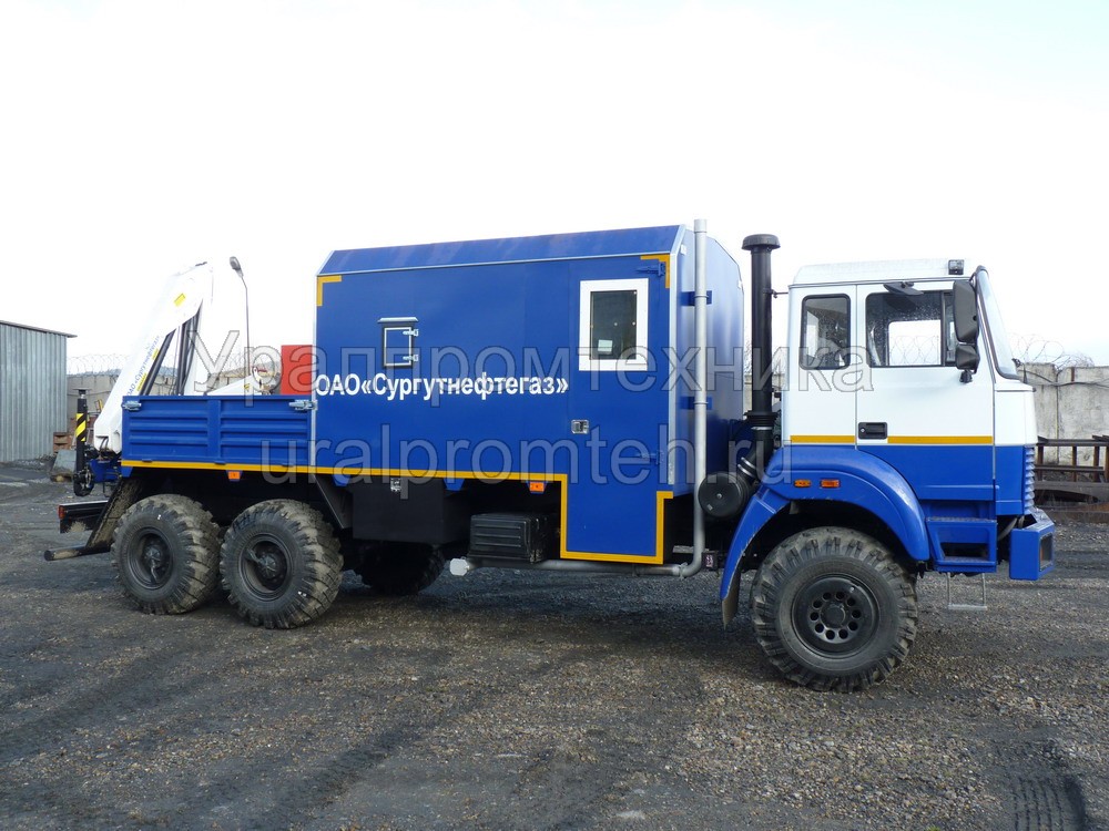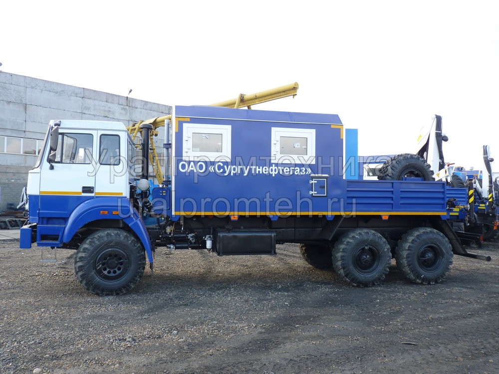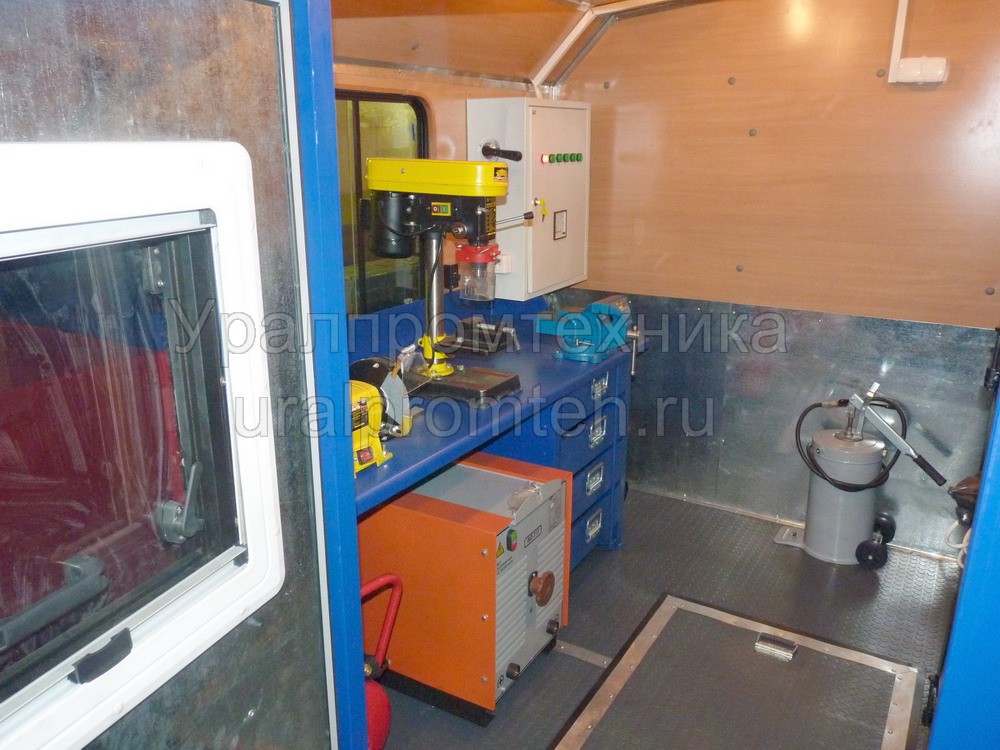 Агрегат для ремонта и технического обслуживания станков-качалок АРОК (Мастерская передвижная), предназначен для транспортирования оборудования и ремонтной бригады до 6 человек для выполнения комплекса работ по ремонту и техническому обслуживанию нефтепроводного оборудования