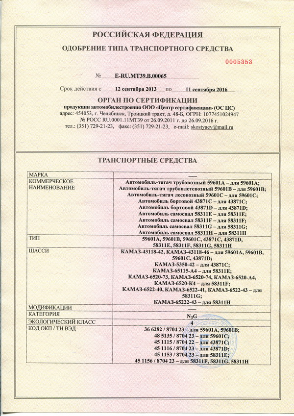 ООО «Уралпромтехника» получило новое одобрение типа транспортного средства на самосвалы, бортовые автомобили, трубоплетевозы и лесовозы на шасси КамАЗ Евро-4.